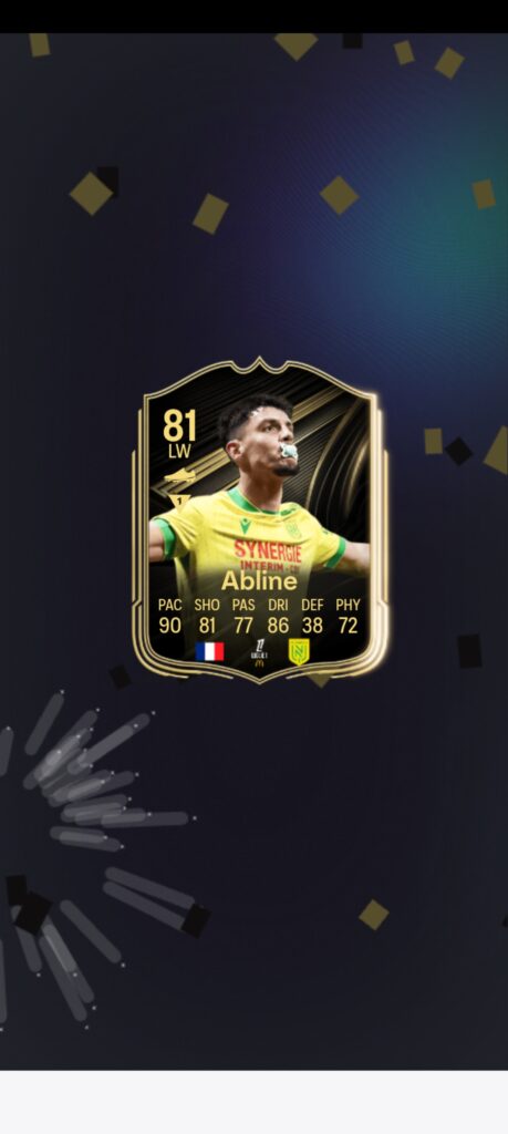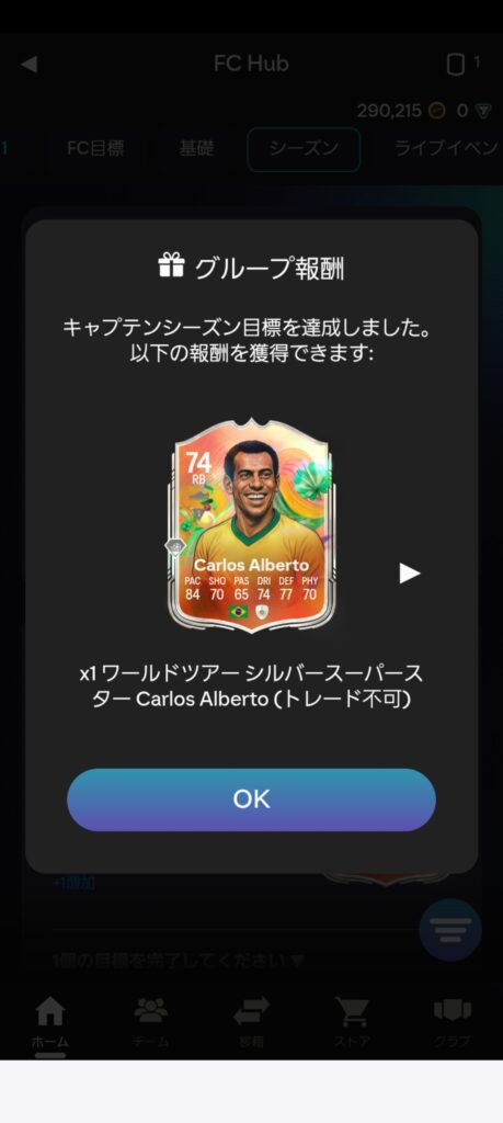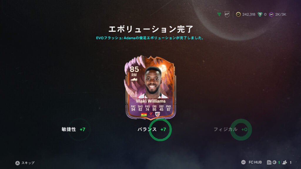 無事にイシをゲット。実は彼、FC22の頃によく使っていたスペインの選手。アプグレでシュートが99になっていますので少し使ってみたいと思います。