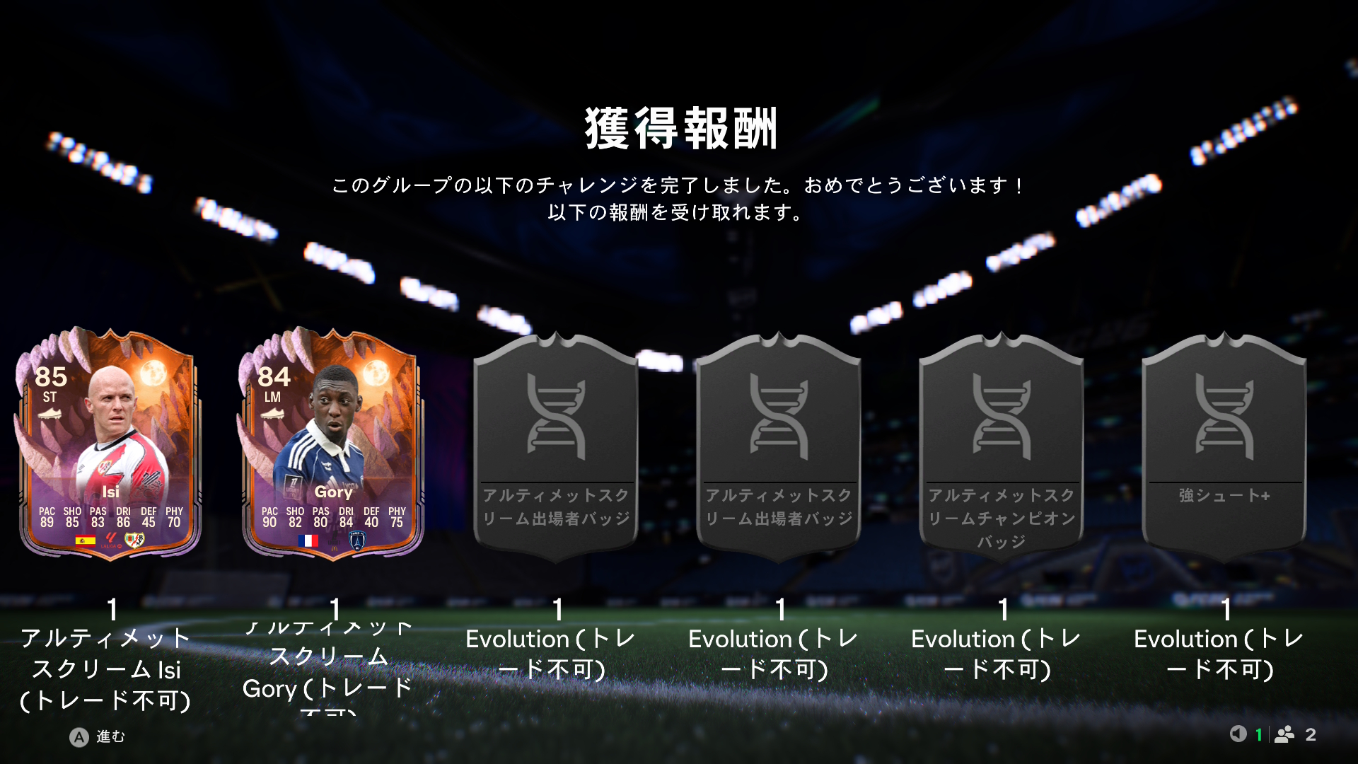 無事にイシをゲット。実は彼、FC22の頃によく使っていたスペインの選手。アプグレでシュートが99になっていますので少し使ってみたいと思います。