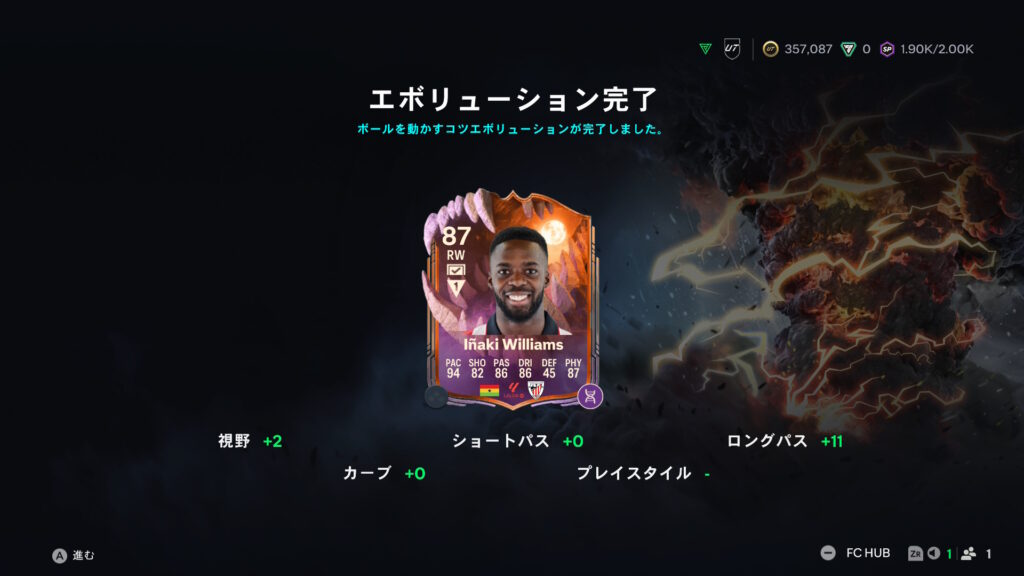 EVOではいろいろと選択。個人的にはルックマンが軽くておすすめ。またイニャキウィリアムズはパスを上げてウイニングらしくなりました。