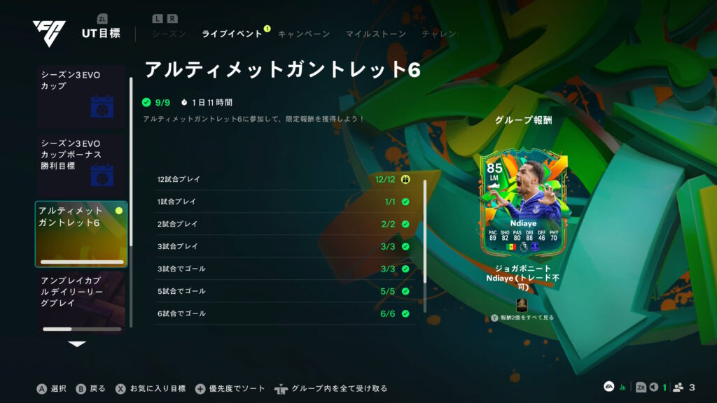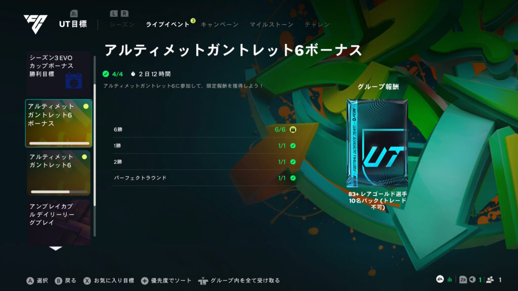 こちらもライブイベント。アンブレイカブル選手を使って10点が地味にしんどかったですが何とか目標達成。