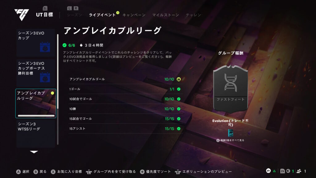 ジンチェンコとベイズリーを作成。二人を使ってアンブレイカブルリーグに参戦し目標達成。