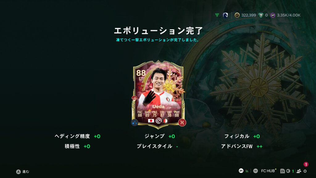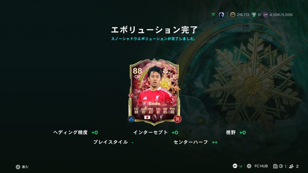 EVOでは上田絢世、遠藤とハイセンを強化。ともに重ね合わせEVOです。最近優良EVOが多く、EVOで強化することが前提となっているような気がします。