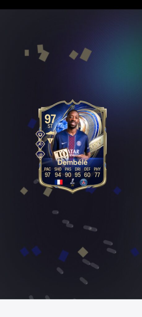 デンベレ来たー!!2025のバロンドーラーを引いてしまいました。コンパニオンアプリからなので特殊演出が見れなかったのは残念ですが、本イベント1の理不尽現役カードをゲット。
