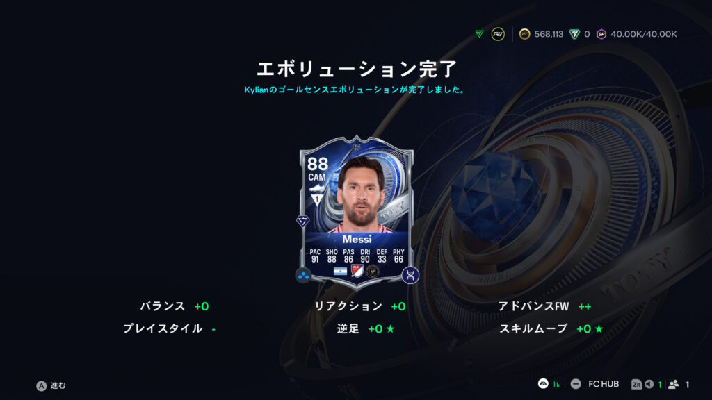 EVOにて金メッシを強化。まぁまぁでしょう。