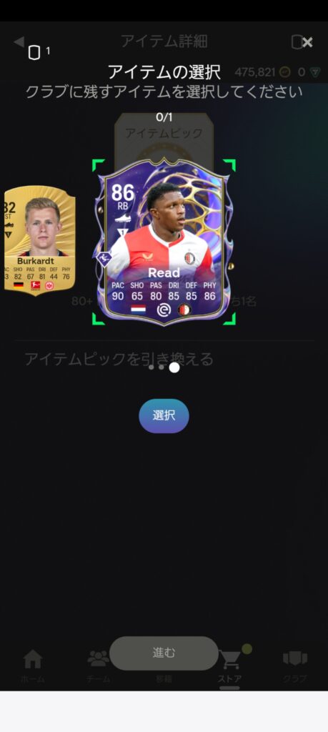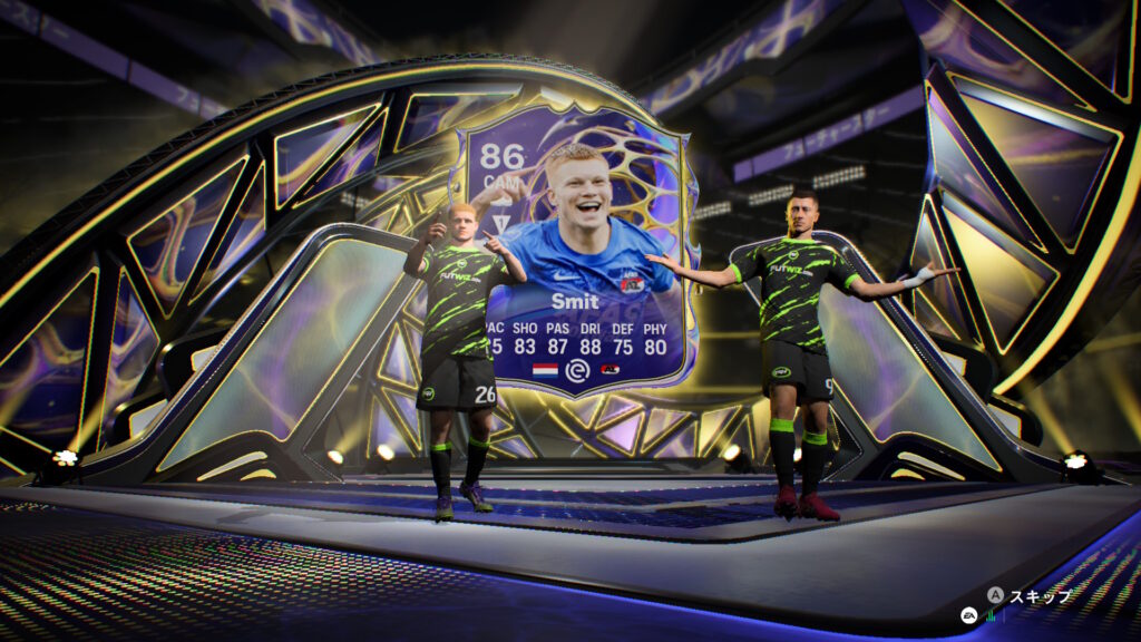 なお、本作のフューチャースターアカデミーは21歳以下でレート84であればどのカードを選んでもOK。手持ちの中から塩貝を選択。現在絶賛EVO中です。