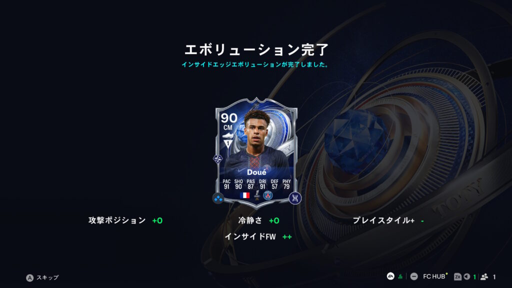 TOTYで引いてしまったデンベレのお供としてドゥエを強化。FutureStarTeam1対象選手となっていますがまず出ることはないので強化しておいて正解でしょう。