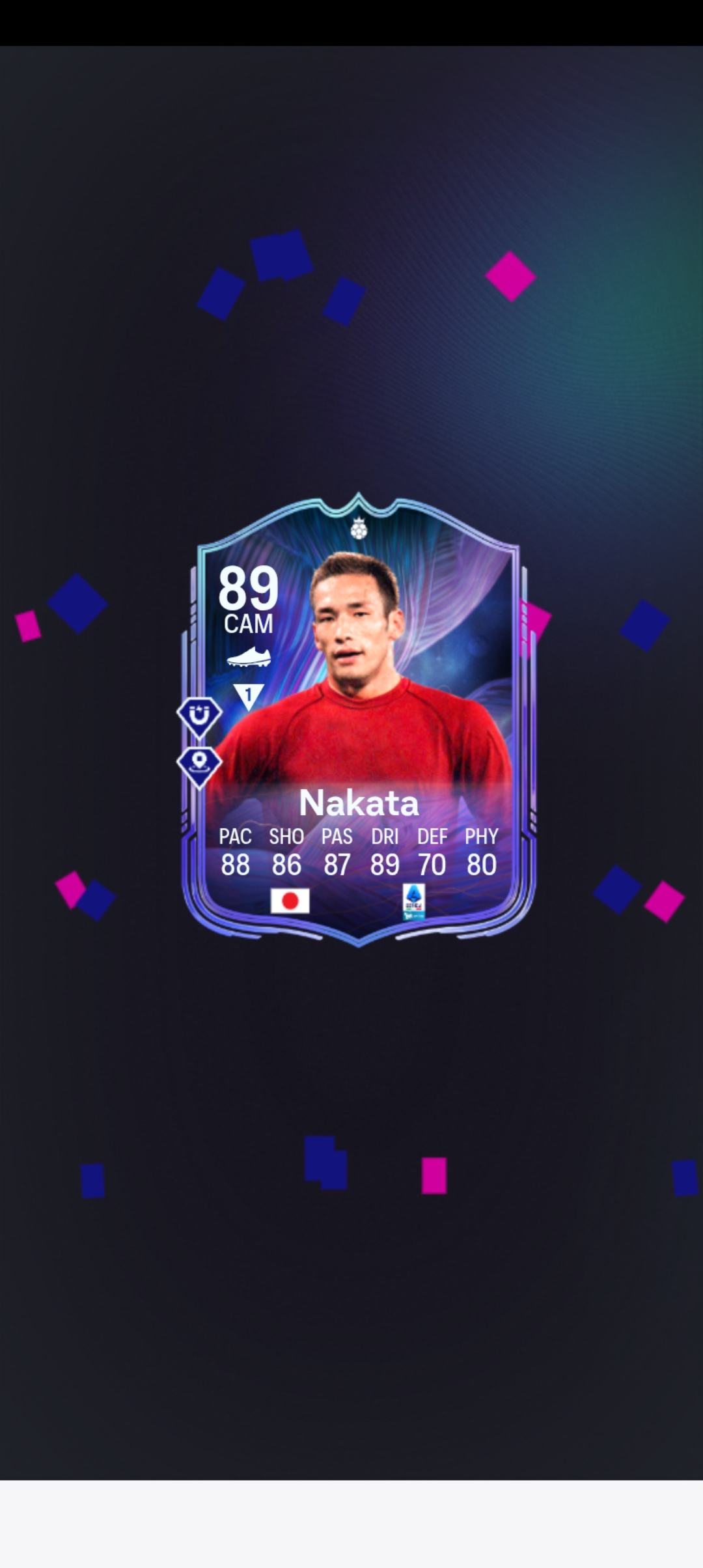 中田英寿!!ただ能力は微妙。毎度思いますが中田のフィジカル値が低いのはどうしてなのでしょうか?FIFA2021のカバースターなのに。